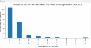 * In 129 out of 232 cases (about 56% of the time), the S&P 500 got back to a new high in less than 1 month.