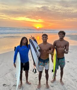 Answer: They are three young Nicaraguans who are moving up quickly in the surfing world and entering the lofty ranks of international stardom: Oscar Guzman and Yefferson Lopez, who qualified for the ALAS Pro Tour Finals in El Salvador (the first time any male Nicaraguan surfers have reached this event), and Rasy Jaso, who, when this photo was taken, was preparing to compete in the ISA World Games in Peru.